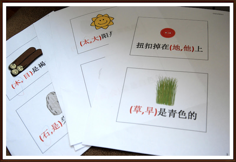 Most toddlers would go through the stage of pointing to things and naming them. Sonshine didn't go through that. He could point, he could name objects but would never do it voluntarily. For instance, if we walk past a cat. Most kids would point to the cat and say 'CAT!'. My son walks past it without even glancing at it and appears oblivious to it. But if i ask him 'where's the cat?' he would then point. Or if  i point and ask him 'what's that?', he can say 'cat' unenthusiastically & annoyed like 'duh, don't you know that's a cat mummy?'.